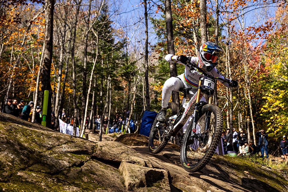 The men's voting was between two outstanding riders Whistler, BC's, Goldstone, who won the Downhill world title and World Cup overall titles (including five individual World Cup wins), and previous Derek Gee, who finished fourth overall in the Giro d'Italia. Goldstone's world title and World Cup title is the first time a Canadian has won both Elite titles in the same season, and he took 65% of first place votes. His world championship title was chosen as the top performance of the year, chosen by 62% of voters. Goldstone has previously been recognized with our Roger Sumner (Best Newcomer) Award, in 2021.